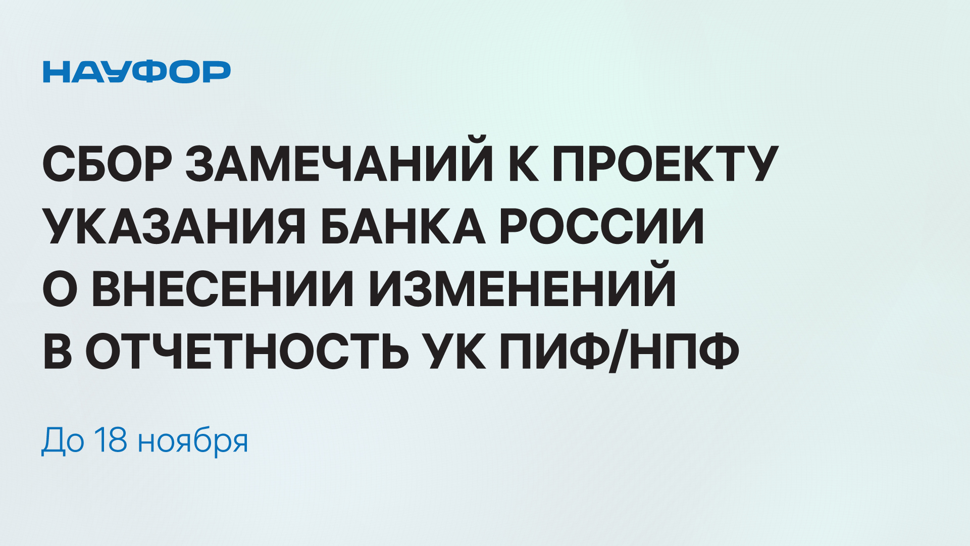 До 18 ноября включительно НАУФОР проводит сбор замечаний и предложений к проекту.
