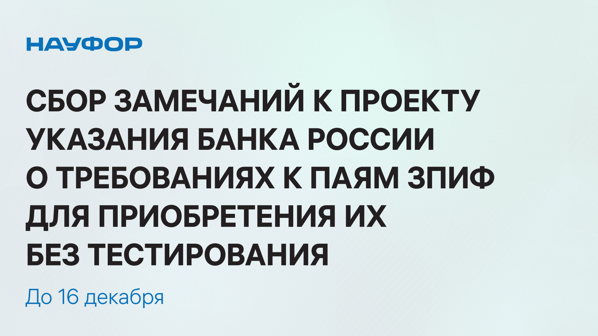 До 16 декабря включительно НАУФОР проводит сбор замечаний и предложений к проекту.