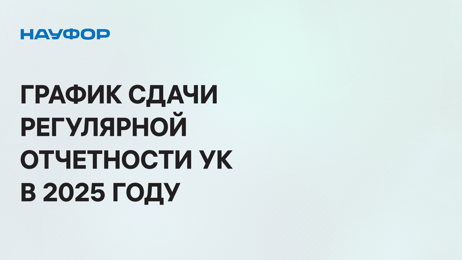 График включает в себя сроки предоставления регулярной отчетности УК ПИФ/НПФ в 2025 году, исключая консолидированную отчетность1, и составлен в соответствии с требованиям указаний Банка России № 6292-У «Об объеме, формах, порядке и сроках составления и представления в Банк России отчетов", № 6296-У 2«О формах, порядке и сроках представления в Банк России бухгалтерской (финансовой) отчетности отдельных некредитных финансовых организаций", № 6054-У «О формах, сроках и порядке составления и представления в Банк России отчетности об операциях с денежными средствами отдельных некредитных финансовых организаций", № 6789- У «О формах, сроках и порядке составления и представления в Банк России отчетности об операциях с денежными средствами отдельных некредитных финансовых организаций».