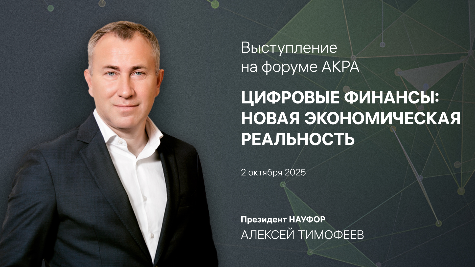 Президент НАУФОР Алексей Тимофеев выступил в четверг, 2 октября, на III Форуме «Цифровые финансы: новая экономическая реальность», организованном рейтинговым агентством АКРА.