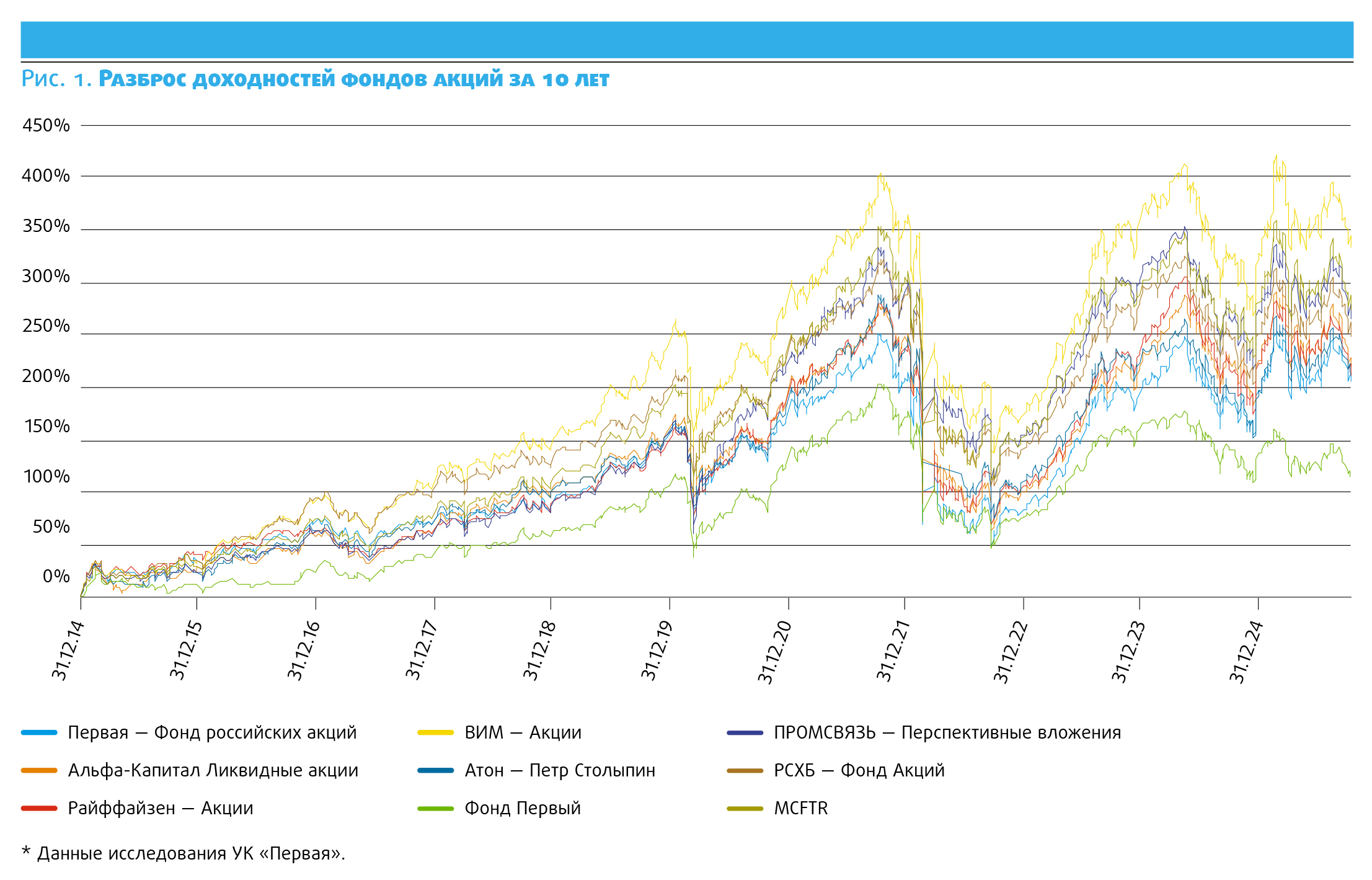 Разброс в доходности составляет от 138% до 402% за 10 лет. Это огромная разница, значит, оценка качества управления - не праздный вопрос, а выбор качественно управляемого фонда имеет прямое и значительное влияние на долгосрочный доход инвестора. Но самостоятельно провести такое исследование более 90% людей просто не в состоянии.