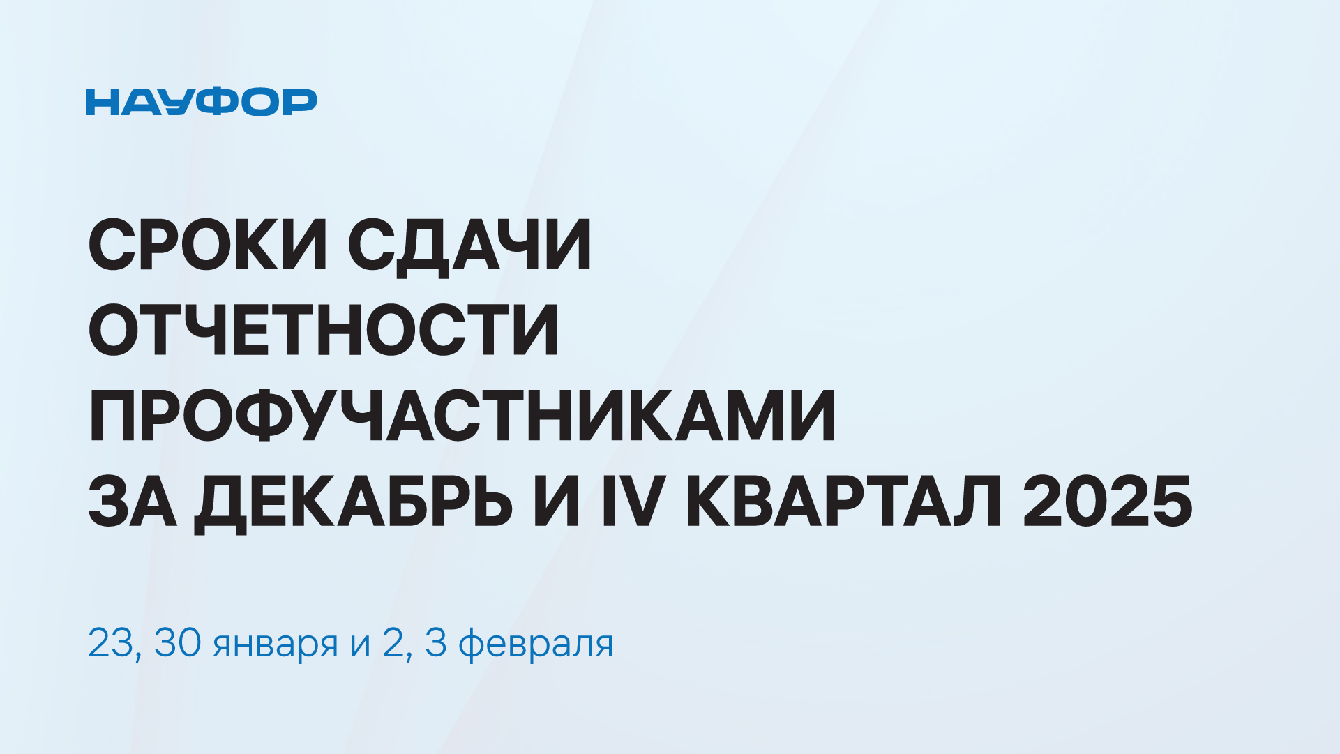 Уважаемые профучастники, напоминаем о сроках представления в Банк России отчетности и иной информации за декабрь и IV квартал 2025 - 23, 30 января и 2, 3 февраля.