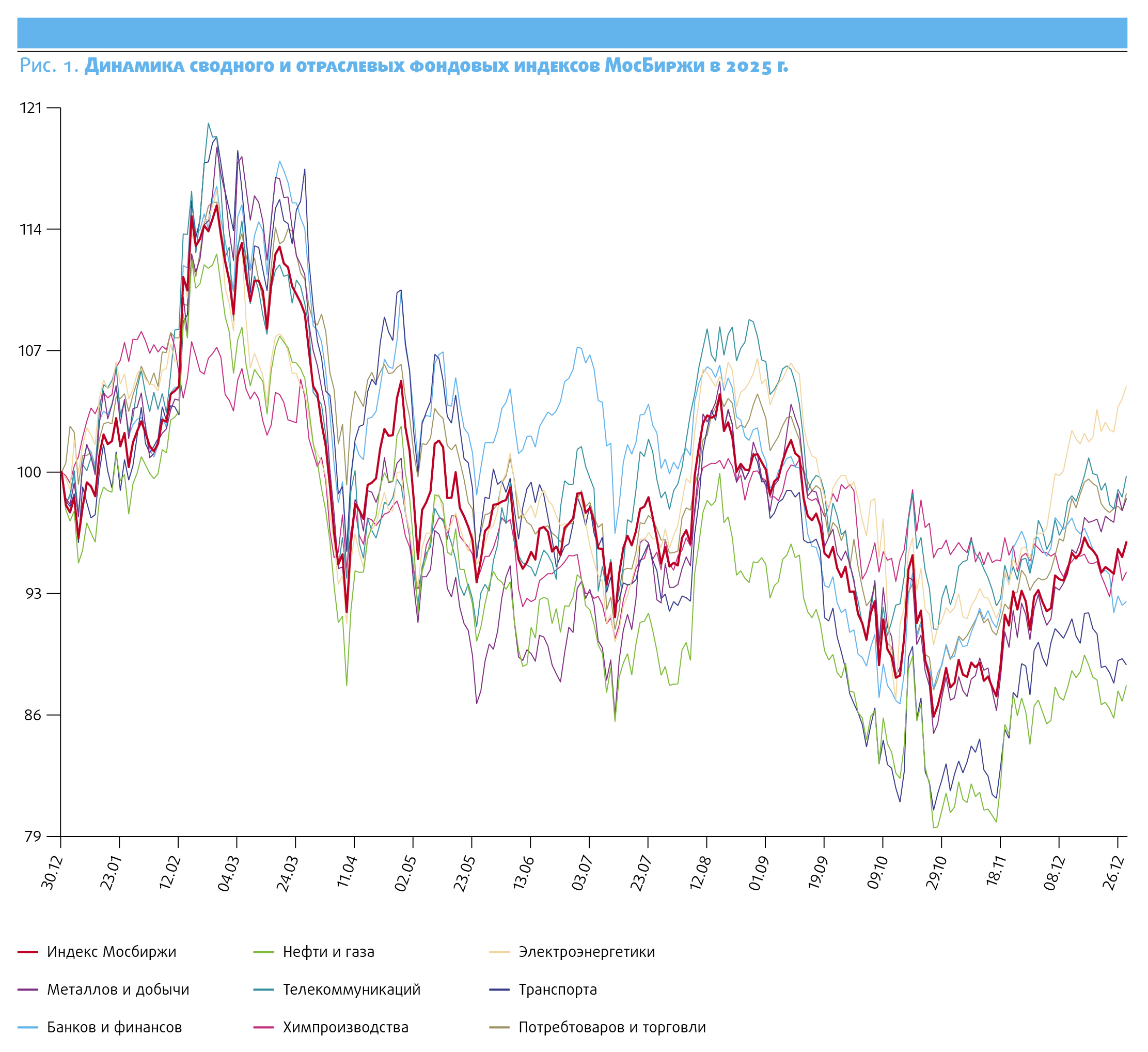 После локальной просадки новый выход индекса МосБиржи за рубеж 2700 пунктов произошел в конце первой недели декабря на ожиданиях прогресса в переговорном процессе урегулирования конфликта вокруг Украины. В дальнейшем вплоть до конца года колебания индекса МосБиржи проходили в основном в диапазоне 2700-2800 пунктов. При этом итоги последнего в 2025 году заседания ЦБ РФ, на котором ключевая ставка была снижена до 16% годовых, не оказали значимого влияния на динамику российских акций.