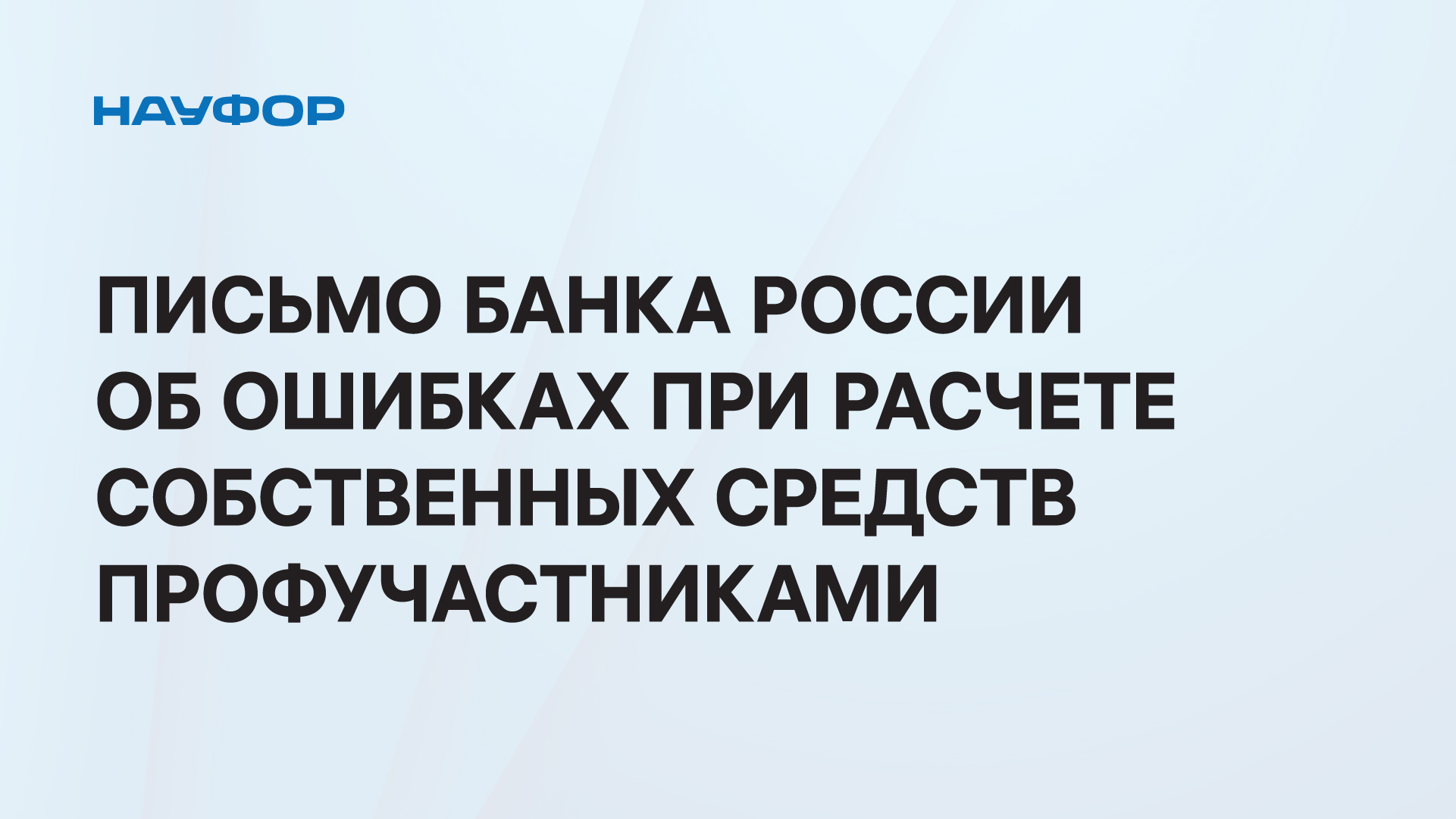 Департамент инвестиционных финансовых посредников Банка России (далее - Департамент) в связи с выявлением в ходе надзорных мероприятий типовых ошибок, допускаемых профессиональными участниками рынка ценных бумаг (далее - профессиональные участники) при расчете размера собственных средств (далее - РСС) на основании требований Указания Банка России № 5099-У1, просит Национальную ассоциацию участников фондового рынка (НАУФОР) довести до сведения членов саморегулируемой организации следующую информацию.